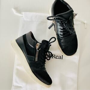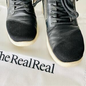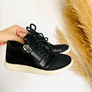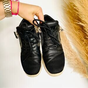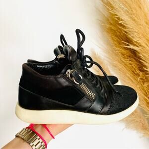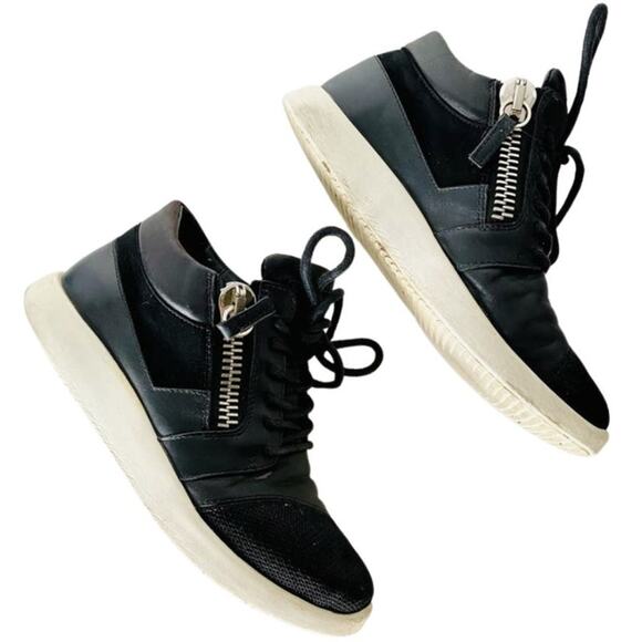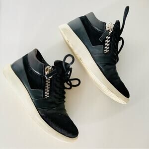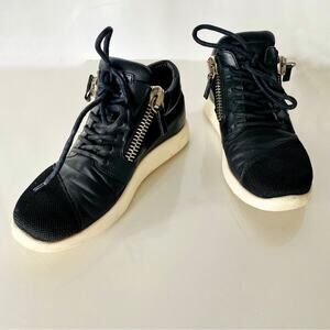 GIUSEPPE ZANOTTI Black White Leather Fabric Zipper Zip Lace Up Sneakers Shoes 37