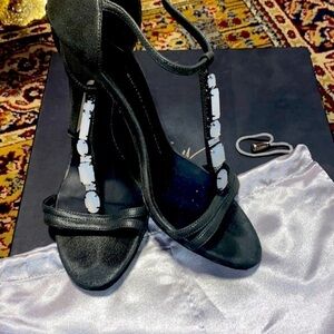 GIUSEPPE ZANOTTI Crystal Embellished T-Strap Sandals (Size 38) US 8