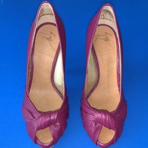 GIUSEPPE ZANOTTI DESIGN Purple Leather Peep Toe Pump Shoes Sz 6