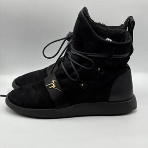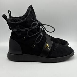 GIUSEPPE ZANOTTI Kriss Winter High Top Suede Shearling Lined Boots Black Sz 10