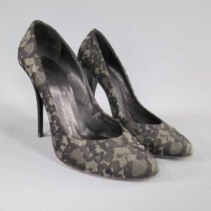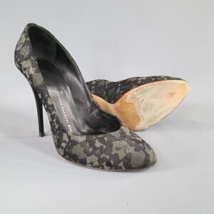 GIUSEPPE ZANOTTI Size 7.5 Grey Black Lace Pumps