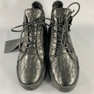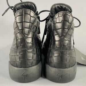GIUSEPPE ZANOTTI Size 9 Black Croc Embossed Leather High Top Sneakers