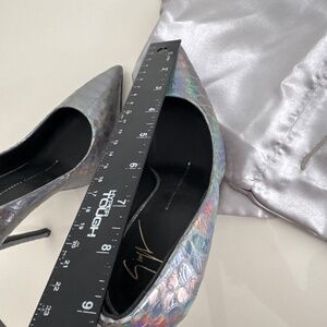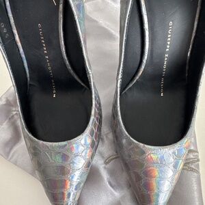 GIUSEPPE Zanotti Silver Iridescent Size 5 -4.25” Heels with Dust Cover