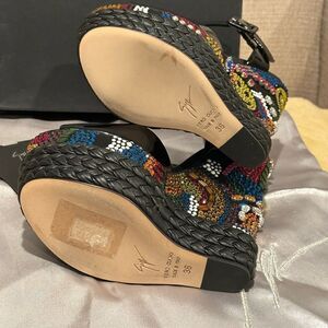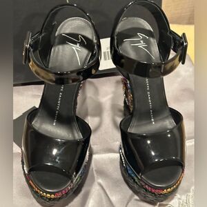 GIUSEPPE ZANOTTI LOLAS SAND, VERNICE NERO TOMAIA , LOVE & PEACE Wedge size EU 36