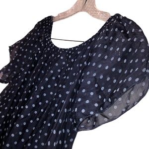 GIUSY Italy silk ble polka dot flutter sleeve dress XS ADORABLE