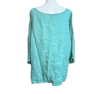GIUSY Linen Blouse Women M Cyan Italy Boxy Minimalist Quiet Luxury Casual Top
