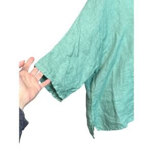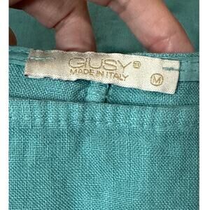 GIUSY Linen Blouse Women M Cyan Italy Boxy Minimalist Quiet Luxury Casual Top