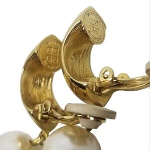 GIVENCHY 1980s GOLDTONE & FAUX PEARL DROP CLIP ON EARRINGS