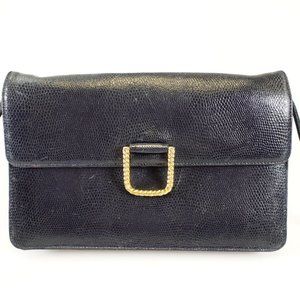 GIVENCHY Bag Leather Crossbody Purse Small Lizard VINTAGE Rare Dark Black Navy