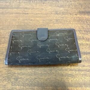 GIVENCHY Classic Vintage Logo Leather x Suede Long Wallet Brown *read*