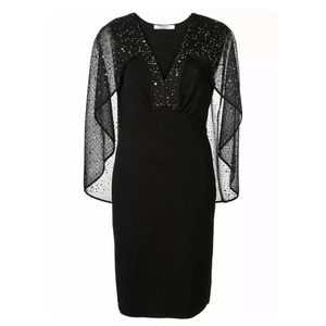 NEW GIVENCHY Black Diamante Crystals Embellished Cape Stretch Knit Dress