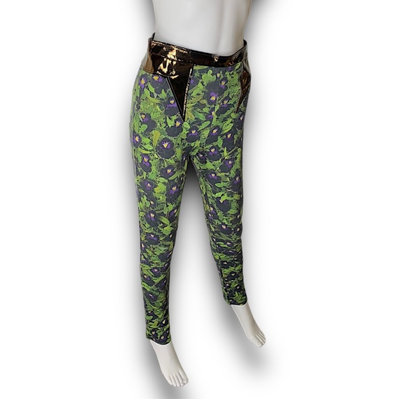 GIVENCHY FLORAL LEGGINGS W PATENT ACCENT