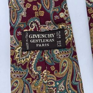 GIVENCHY GENTLEMAN PARIS SILK TIE BURGUNDY GREEN GOLD PAISLEY SMOOTH 3.5" X 56"