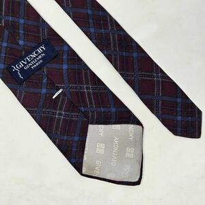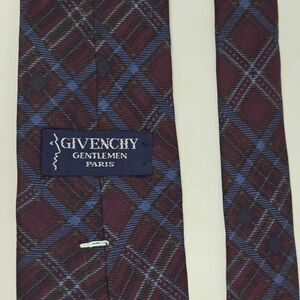 GIVENCHY GENTLEMAN PARIS SILK TIE MAROON BLUE TARTAN PLAID 3.5" X 55"