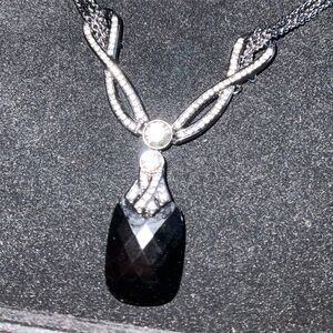 GIVENCHY LADIES ADJUSTABLE CHOCKER. RHINESTONES AND A BLACK FACETED MAIN STONE.