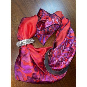 GIVENCHY Logo Eyelet Silk Twill Scarf In Red 26x27 with ring