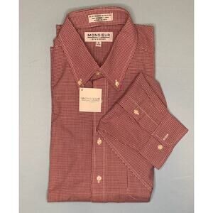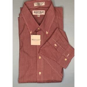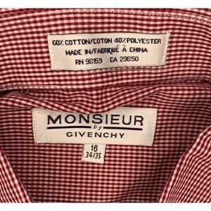 GIVENCHY Monsieur's Men's Burgundy Check Button Down Dress Shirt.