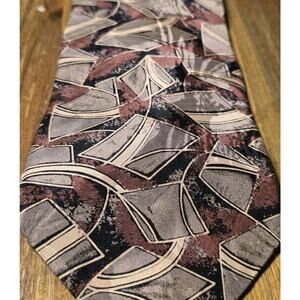 GIVENCHY Monsieur Men's Silk Tie Classic Beige Red Black Geometric Design EUC