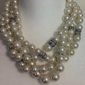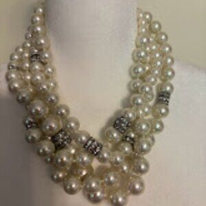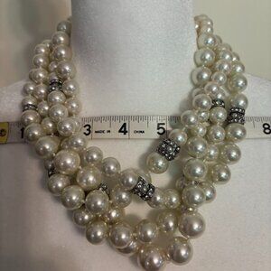 GIVENCHY Multi Strand White Pearl Necklace in Silver Tone (16" + 4" Extender)