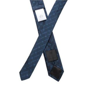 GIVENCHY Navy Made In Italy Silk Designer Diagonal Logo Tie