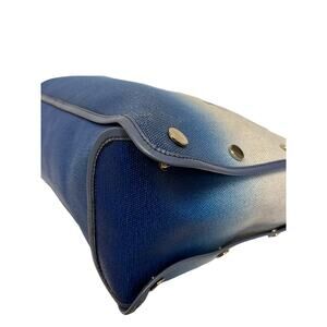 This GIVENCHY PARIS Gray Blue Ombre Canvas Logo Bond Tote Shopper Shoulder Bag showcases contemporary elegance with its eye-catching ombre gradient and signature logo detailing. Blending refined craftsmanship with modern flair, it’s a versatile statement accessory perfect for elevating any look.