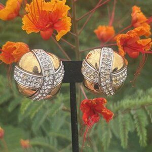 GIVENCHY Paris New York Couture Large Gold “Kiss” Rhinestone Crystal EARRINGS