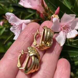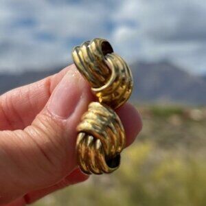 • Fabulous 1980s Vintage “Givenchy Paris New York” Hallmarked Gold- Plated Ribbon Knot Pierced Earrings