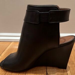 GIVENCHY - Shark Lock - Black leather open-toe wedge bootie/sandals
