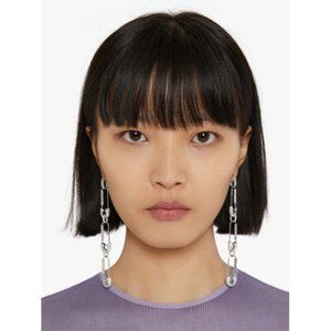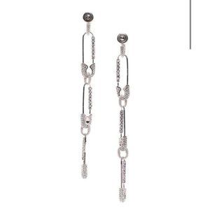 GIVENCHY Silver G Clip Safety Pin With Crystals Earrings