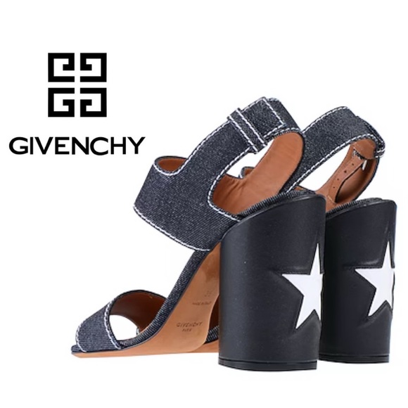 GIVENCHY Star Block Chunky Heel Ankle Strap Sandals RARE Denim Blue White Sz. 6