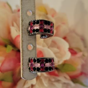 Beautifully designed with black, red and pink crystals on a dark gun-metal finish Mini hoop