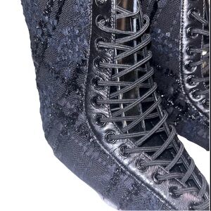 GIVENCHY pumps heels black lace size EU 37.5 lace-up show pointed toe knit NWOB