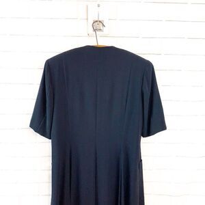 GIVENCHY EN PLUS Navy Button Down Dress is gentle worn. Vintage piece in great condition. Gold Buttons. Shoulder pads. Front pockets side splits and soft fabric.