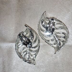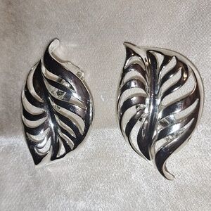 GIVENCY Silver Leaf Clip-on Earrings. Marked on back Givency Paris New York. These are large size 2" long by 1 1/4" wide.