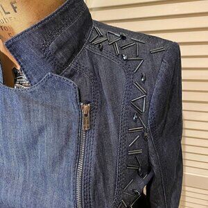 GIZIA Women's Denim Coat/Jacket Blue Size 42/US Size 10 Embellished