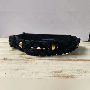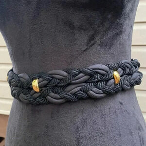 GInnie Johansen Designs 80s ReTrO black woven Cord Belt Velcro EUC gold beads