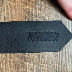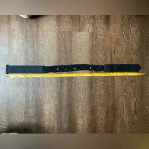This vintage black cord belt with gold colored accent beads is in really nice shape and it is made by Ginnie Johansen Designs out of Dallas. It looks really nice with a shirt or shift dress, and measures 36 inches from end to end with Velcro for easy adjustments.