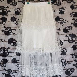G&J MAXI SHEER LACE LAYERED SKIRT