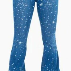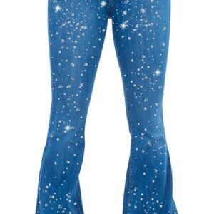 GJG Denim Galaxy Rhinestone Bell Bottom Jean in Medium Wash Denim -34" Inseam