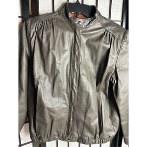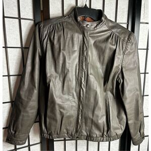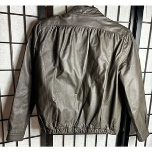 Brown leather zip up side pockets fully lined snap closure neck and waist