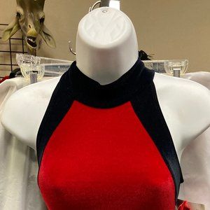 GK Deep Red & Black Adult Small Halter Velvet Figure Ice Skating Dress SK732
