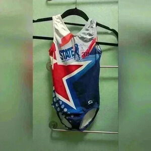 GK Elite Gymnastics Leotard California State Championship edition. slight wear on front.