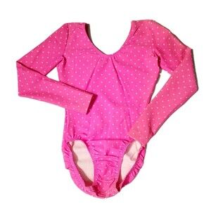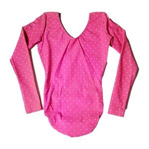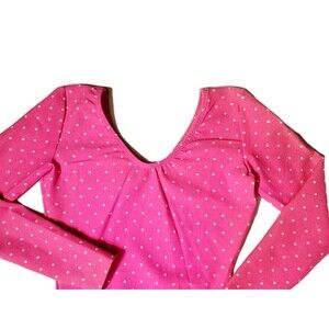 GK Elite VTG 90s Hot Pink Polkadot LS Cotton Leotard Bodysuit Size AXS Adult XS