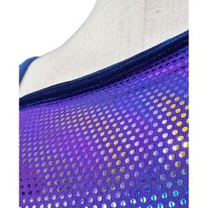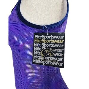 GK Elite VTG Purple Pixelated Swirl Camisole Leotard Velvet Trim Size AM Adult M