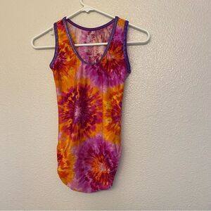 GK gymnastics practice tank sleeveless leotard orange rainbow firework MA adult