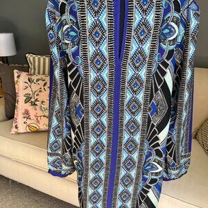 GLAM - BLUE GEOMETRIC PRINT DRESS - SIZE L