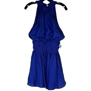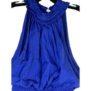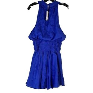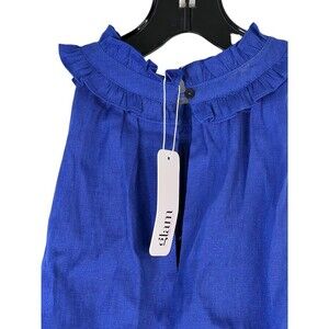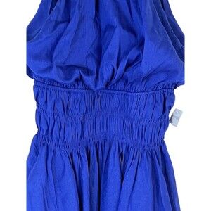 New with Tags GLAM Blue Midi Ruffle Neck Gathered Waist Sleeveless Dress Size M