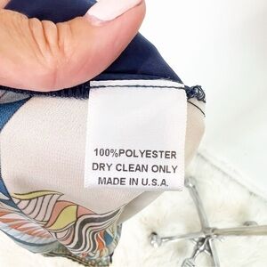 GLAM off-white colorful pattern on front sleeveless boho shift dress. Solid blue on back. Adjustable tie at shoulders.
