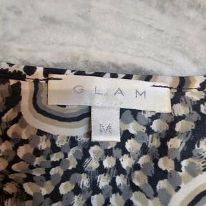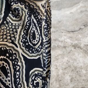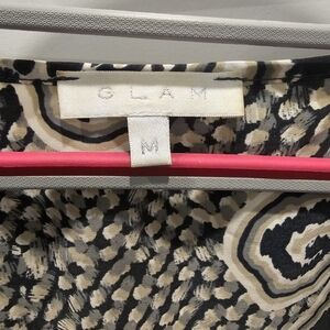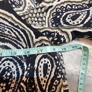 GLAM Tunic Dress M Black Beige Paisley Print Boho Blouse Mini Dress 3/4 Sleeve