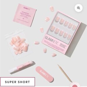 GLAMNETIC press-on nail set. Super short French tips. Includes full coverage nails in a glossy finish. Easy press-on application.